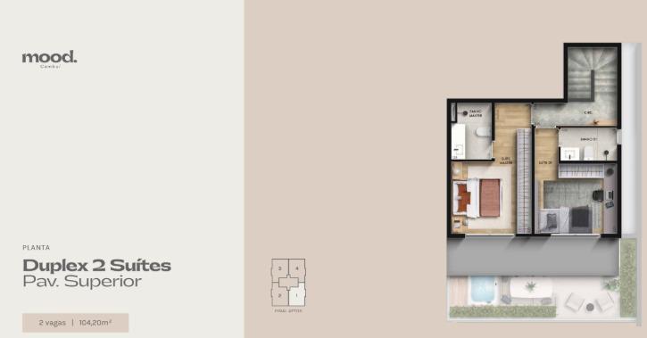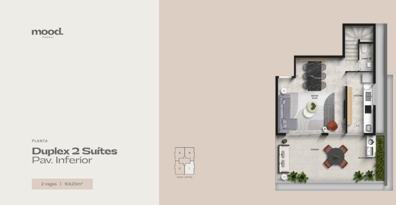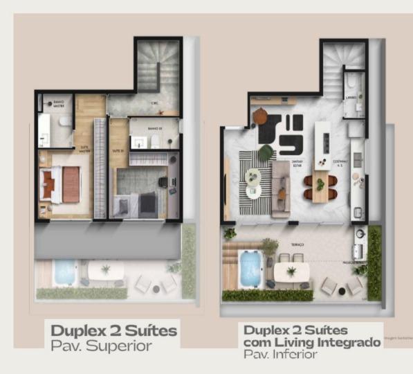 Duplex de 104 m² com 02 suítes e living integrado. 02 vagas de garagens.