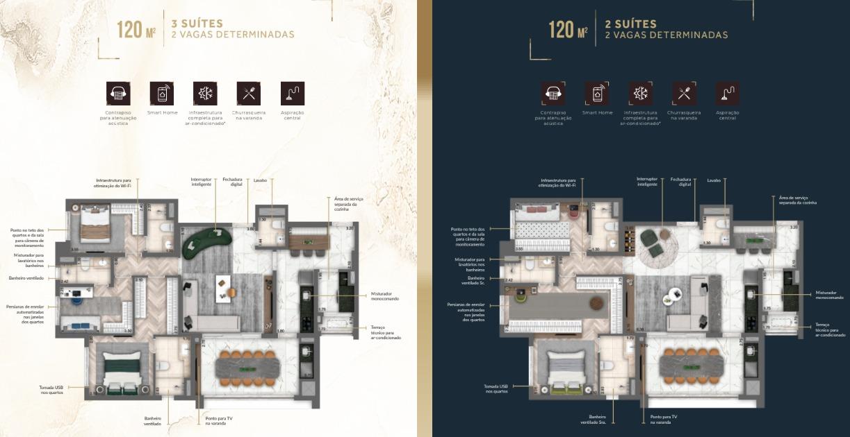 - 3 SUÍTES, OPÇÕES COM 145 MTS E 120 MTS, 2 VAGAS DE GARAGEM.