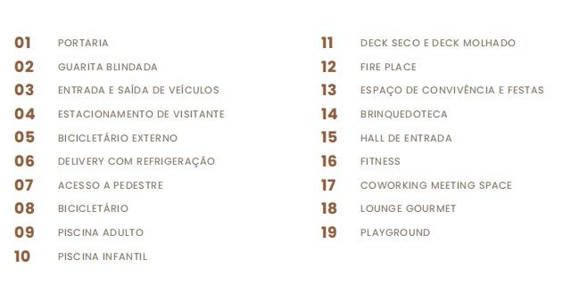 - PISCINA, ACADEMIA, BICICLETÁRIO, SALÃO FESTAS, BRINQUEDOTECA, COWORKING, PLAYGROUND.