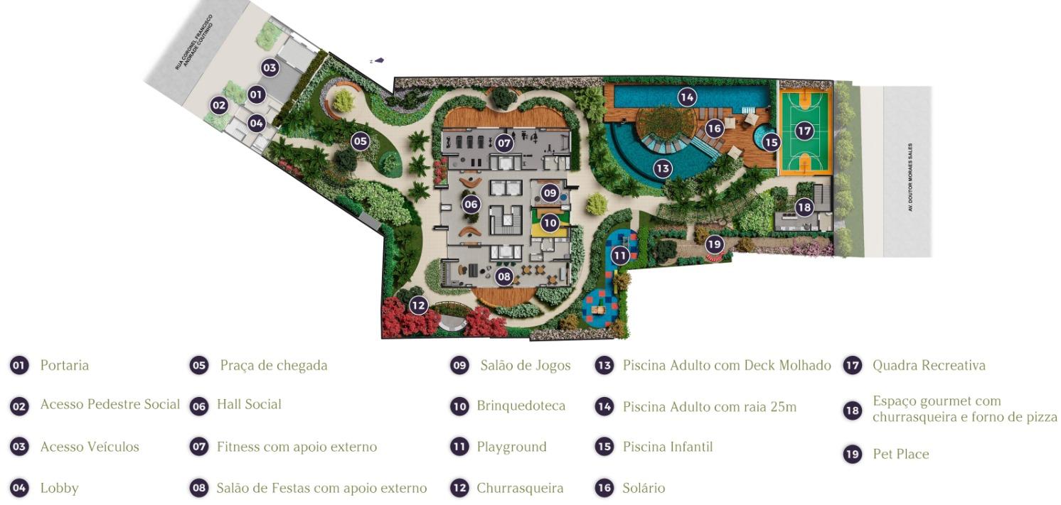 - ACADEMIA, PET PLACE, SALÃO DE FESTAS, SALÃO DE JOGOS, BRINQUEDOTECA, PLAYGROUND, CHURRASQUEIRA, PISCINA ADULTO E INFANTIL, SOLÁRIO.