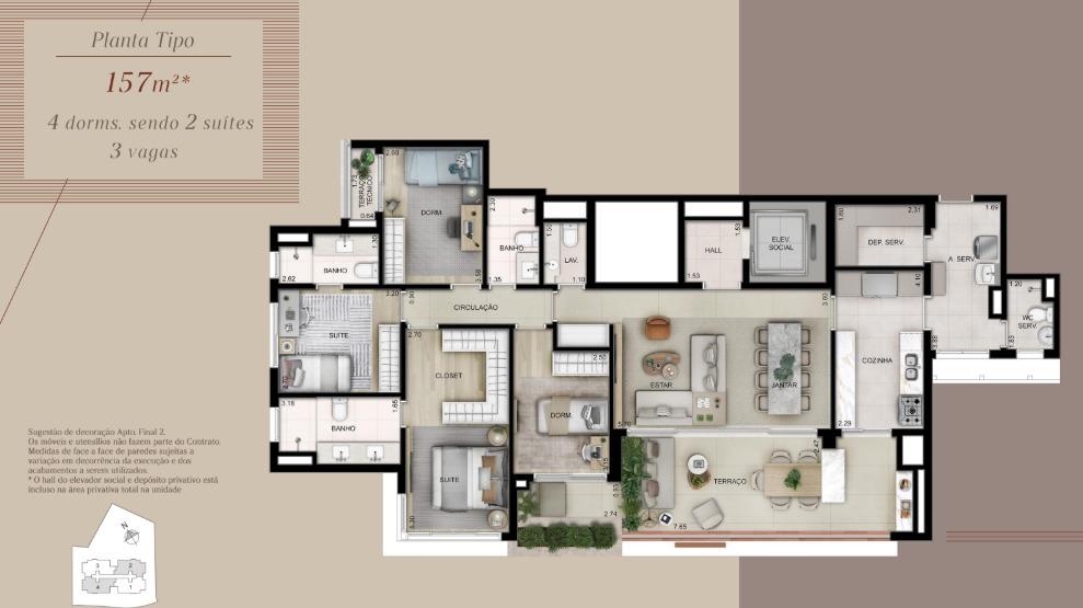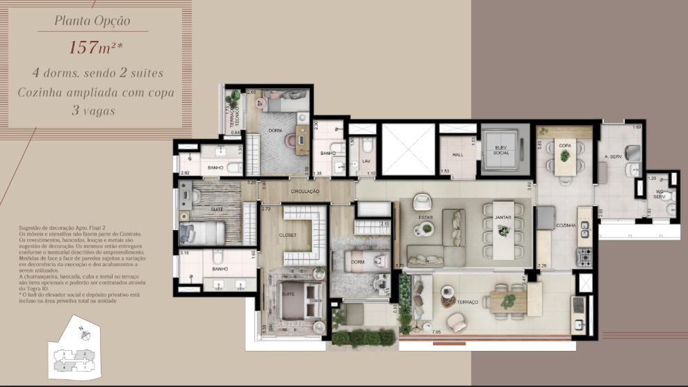 - 3 E 4 DORM, 2 E 3 SUÍTES, 3 E 4 VAGAS, DE 157 M², ALTO PADRÃO, OPÇÃO COBERTURA DUPLEX.