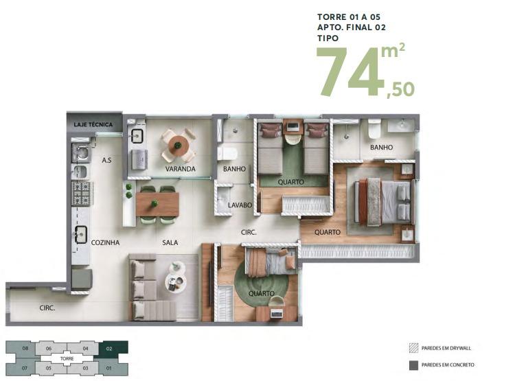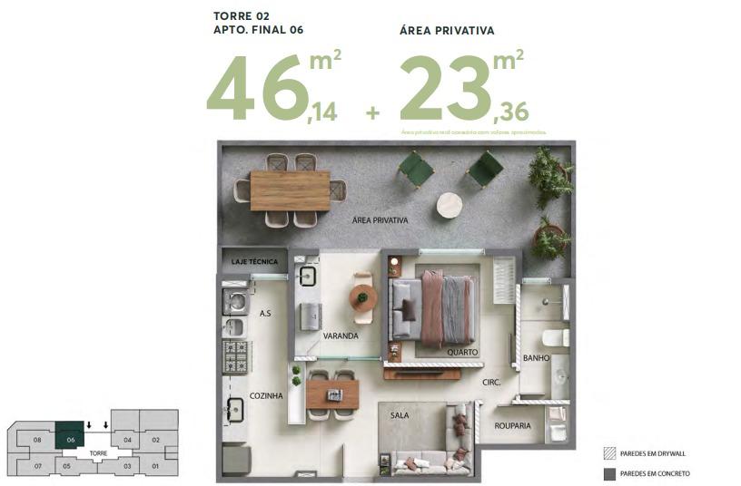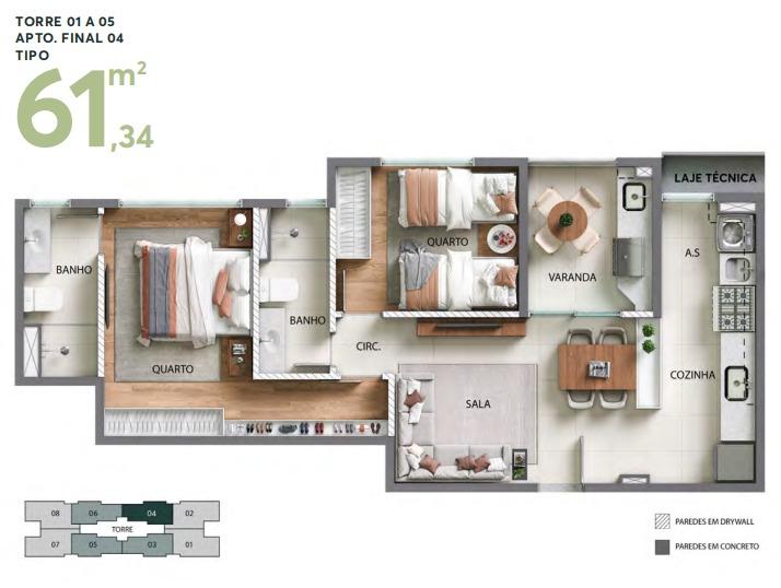OPÇÕES DE 1, 2 E 3 DORMITÓRIOS, SUÍTE, 1 OU 2 VAGAS. OPÇÃO NO TÉRREO COM QUINTAL. 46 MTS 74 MTS, 61 MTS.
