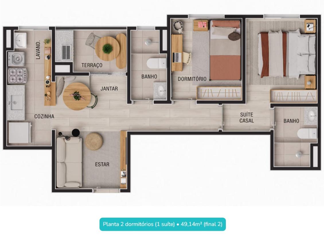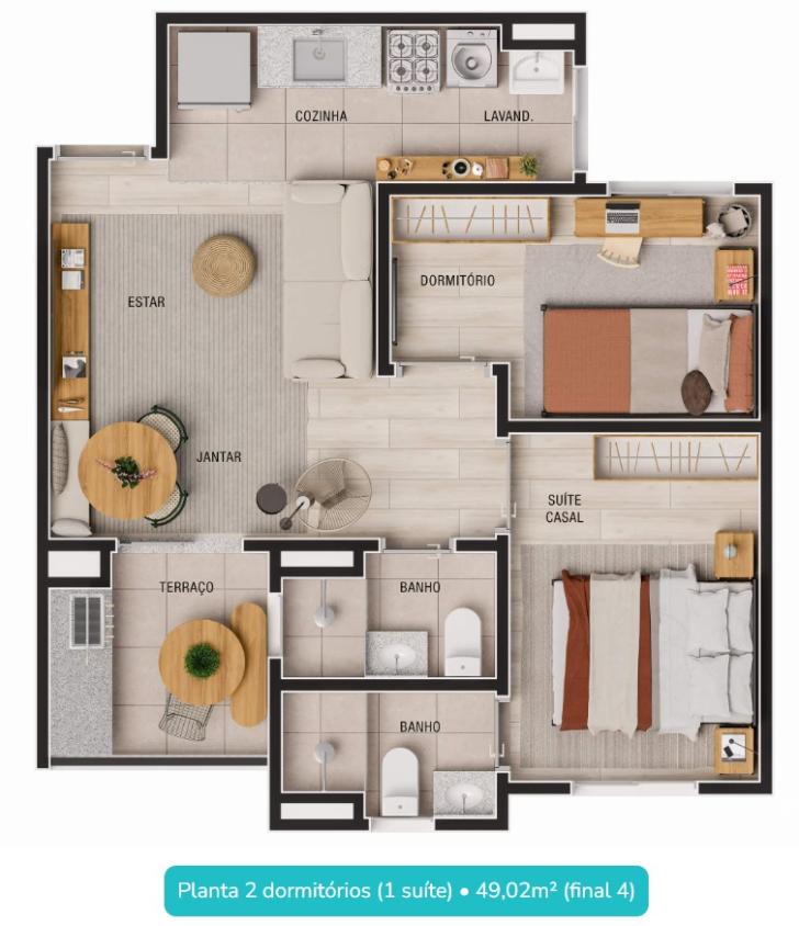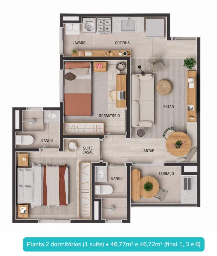 - 2 DORM, SUÍTE, VARANDA, 1 VAGA, 46M², MANSÕES, PRONTO.