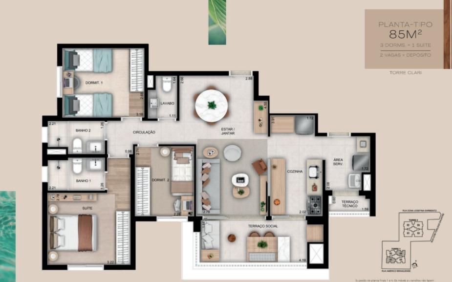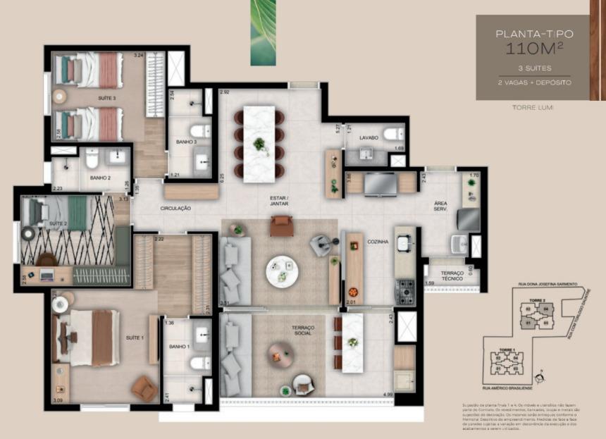 - VÁRIAS OPÇÕES DE PLANTA: 2 SUÍTES \ OU \ 3 DORM COM 1 \ OU \ SUÍTE E 3 SUÍTES.