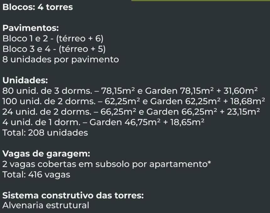 - CONDOMÍNIO CONTA COM: PISCINAS ADULTO E INFANTIL, SOLARIUM, HORTA, SALÃO FESTAS, ACADEMIA, PRAÇA, SALA DELIVERY, ESPAÇO PET, QUADRA RECREATIVA, CHURRASQUEIRA, PLAYGROUND, BRINQUEDOTECA, LAVANDERIA, COWORKING.